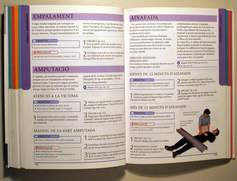 Madrid, Edit. Pearson Educación, 2004. Manual de primers auxilis: consells per a emergències a qualsevol lloc o circumstància Il·lustracions ne color. 287p. 8è major. Rústica editorial il·lustrada. Molt bon exemplar.