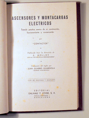 ASCENSORES Y MONTACARGAS ELÉCTRICOS - Barcelona 1952 - Ilustrado