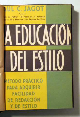 Barcelona, Edit. G. Gili, 1939. Método práctico para adquirir facilidad de redacción y de estilo. 228 p. 8º. Holandesa. Lomo con tejuelo de piel. Guardas coloreadas. Ex libris. Conserva cubiertas originales. Muy buen ejemplar.