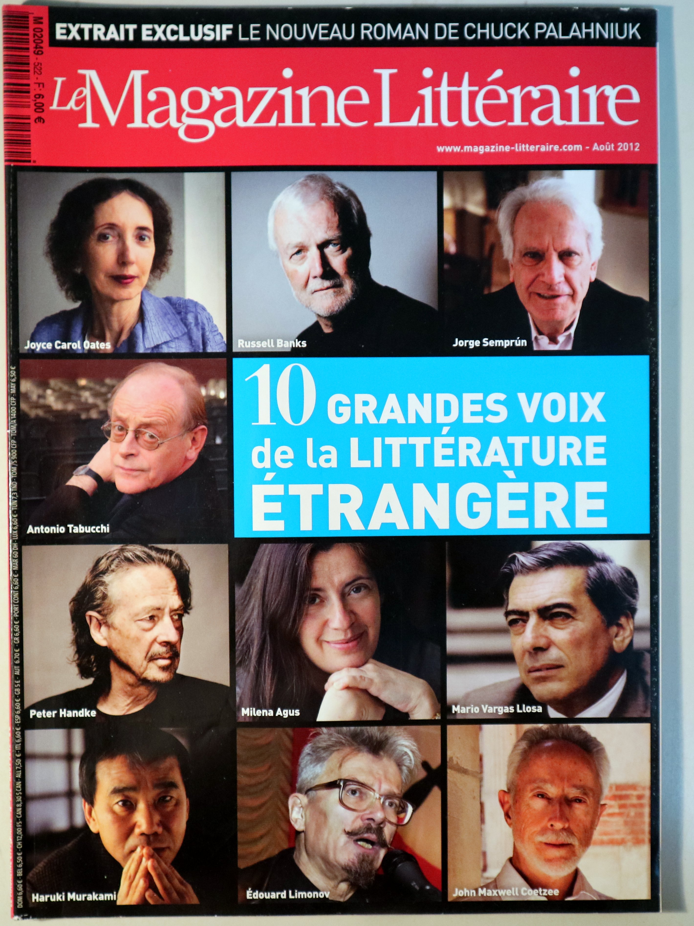 LE MAGAZINE LITTÉRAIRE, Nº 522 (Agosto 2012). 10 grandes voix de la littérature étrangère. - París 2012 - Ilustrada