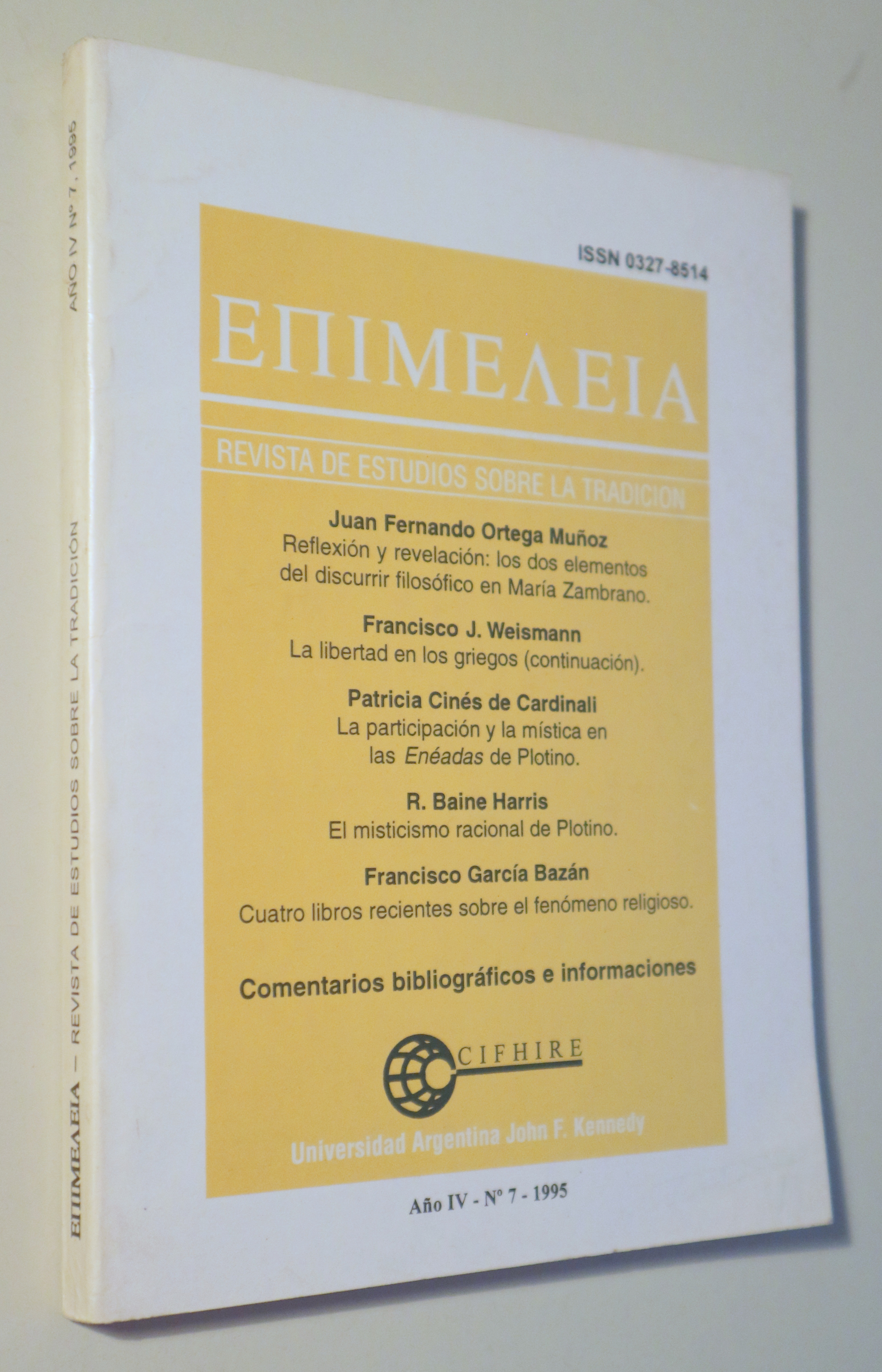 ¡Precio rebajado! EPIMELEIA. Revista Estudios sobre la Tradición. Año IV, nº 7 - Buenos Aires 1995