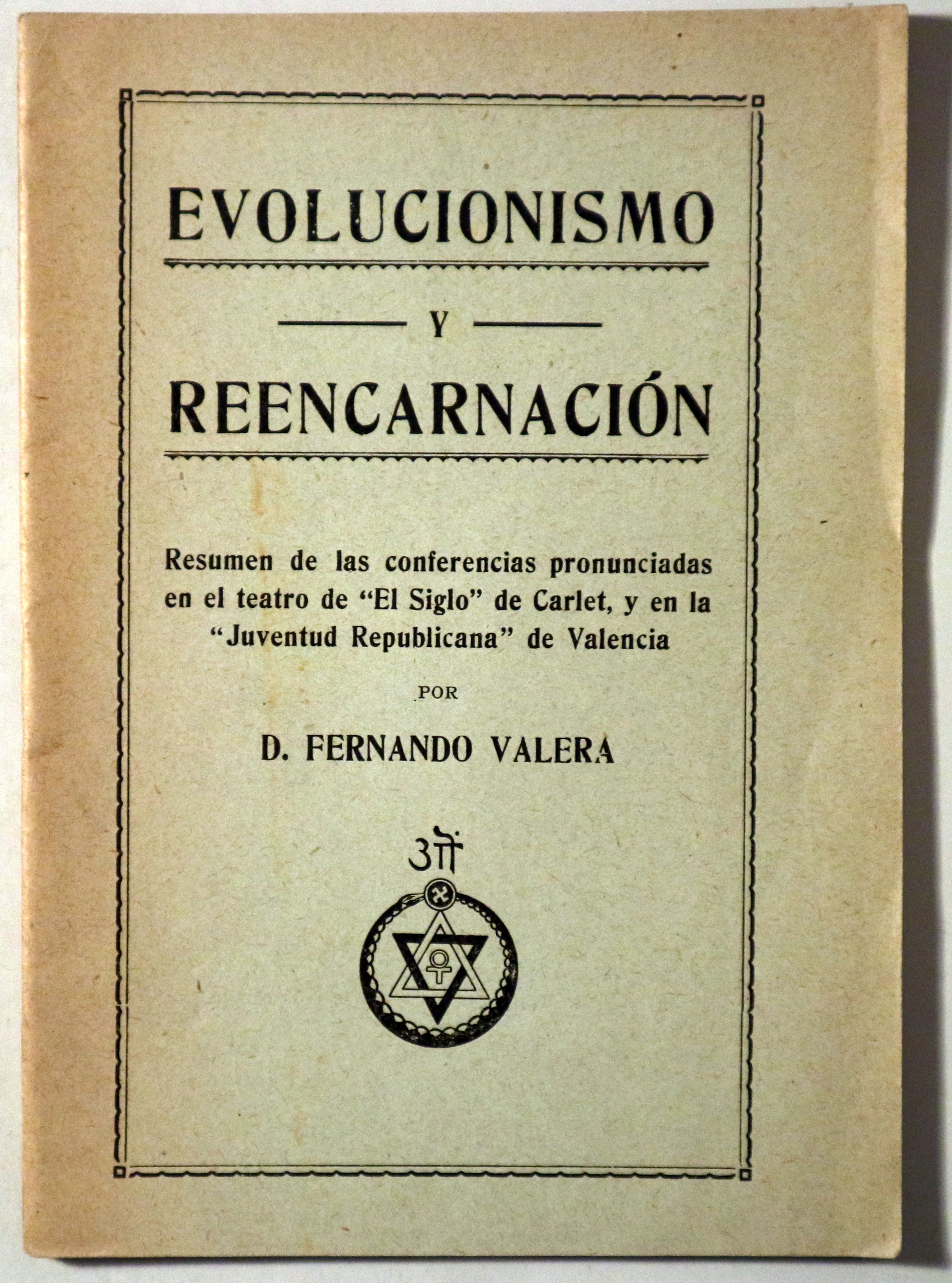Barcelona, Editorial Teosófica Maynadé - Biblioteca Orientalista, 1928. 27 p. 8º. Rústica editorial tipográfica. Algunas manchas de óxido. Un poco desgastado. Buen ejemplar. Resumen de las conferencias `ronunciadas en el teatro de El Siglo de Carlet, y en la Juventud Republicana de Valencia.