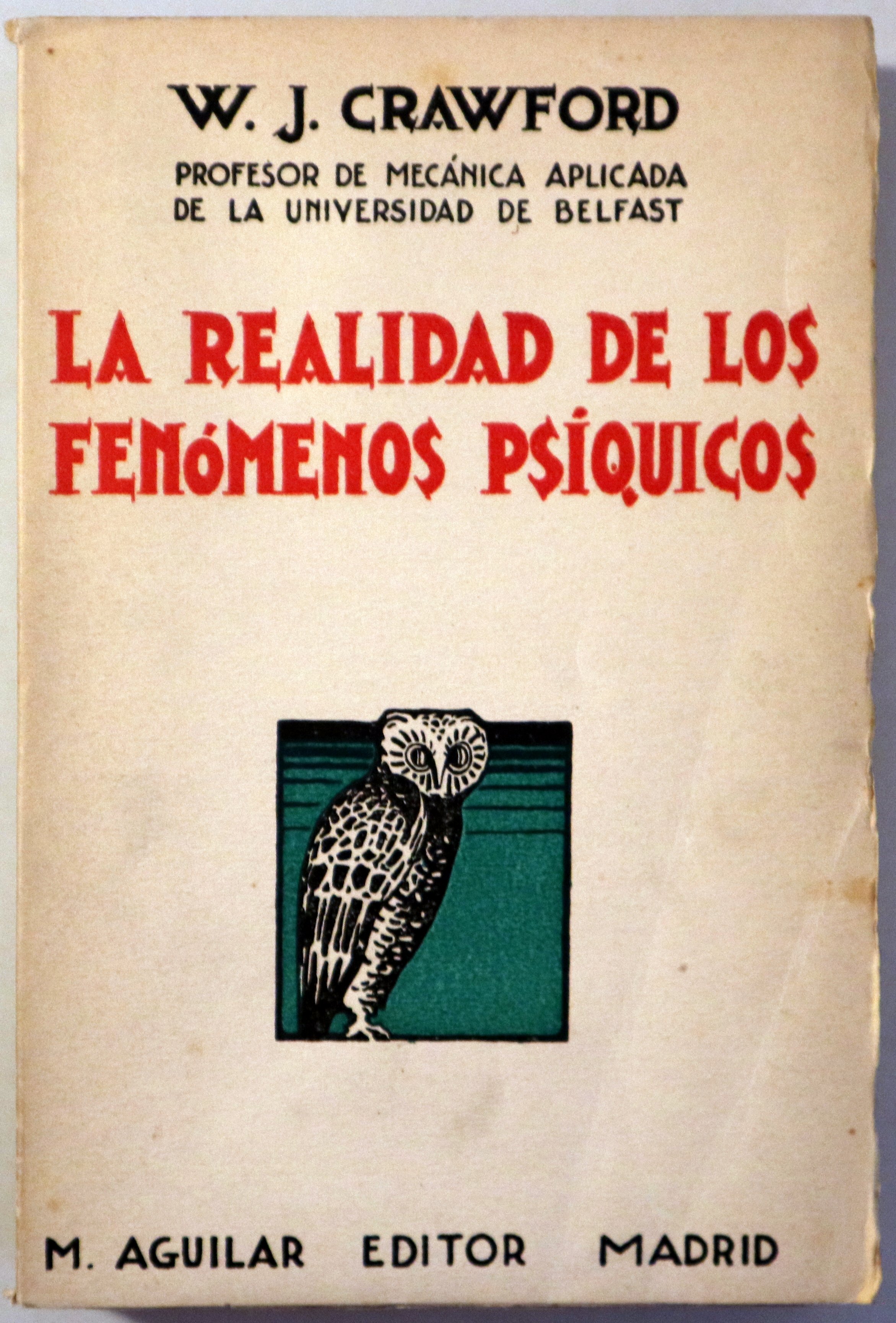 Madrid, Aguilar-Imprenta Pueyo, 1924. Experimentos científicos, Raps, levitaciones, contactos, voz directa y estructuras efectuados en 1915-16 en el círculo Goligher. Fotografías en b/n fuera texto. 345p. 8º. Rústica editorial tipográfica. Muy levemente rozado. Interior en buen estado. Firma antiguo propietario. Intonso. Muy buen ejemplar.