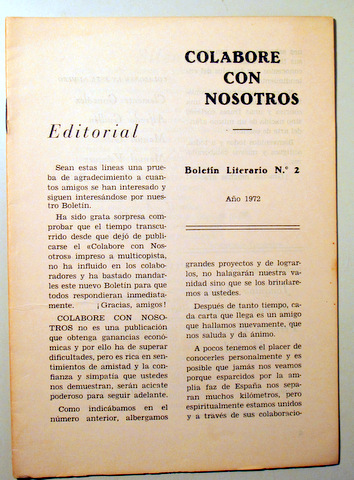 COLABORE CON NOSOTROS. Boletín literario Nº 2 - Barcelona 1972