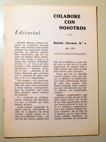 COLABORE CON NOSOTROS. Boletín literario Nº 4 - Barcelona 1972