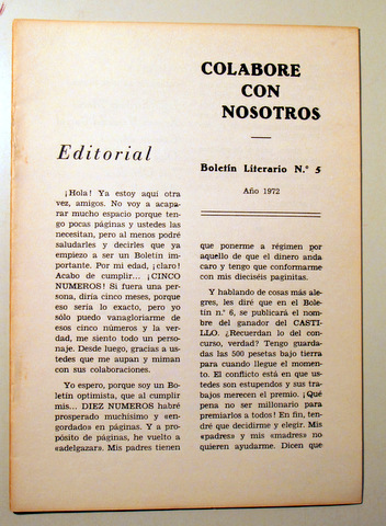 COLABORE CON NOSOTROS. Boletín literario Nº 5 - Barcelona 1972