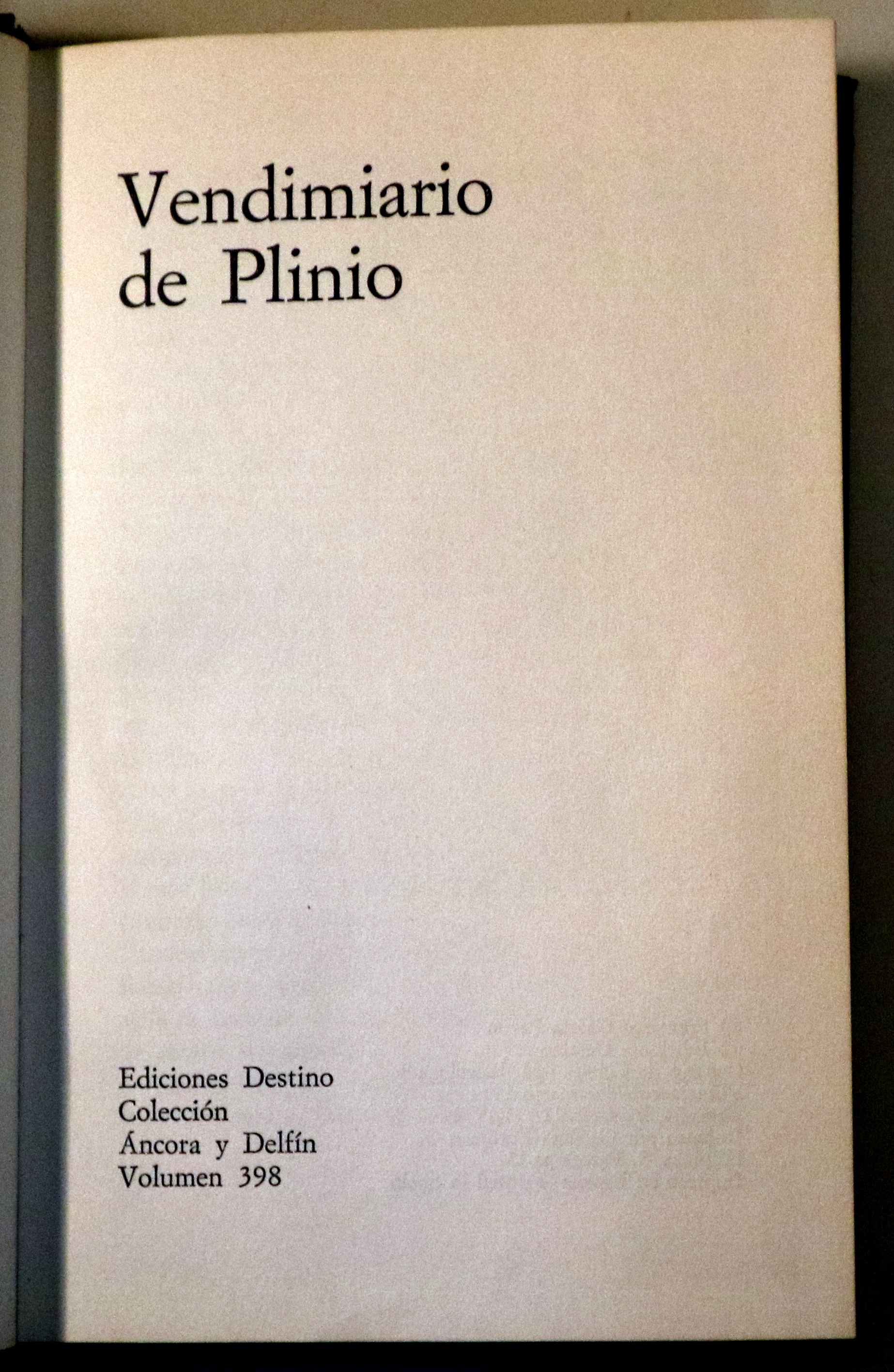 VENDIMIARIO DE PLINIO - Barcelona 1972 - 1ª edición