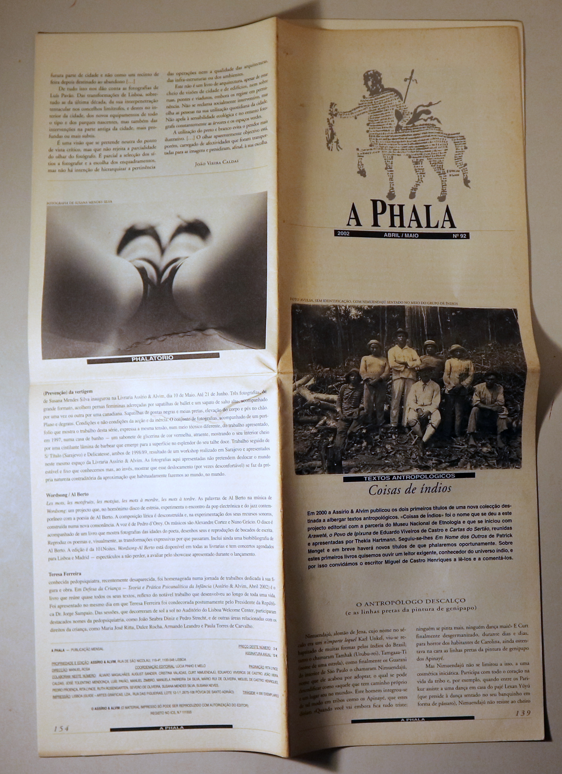 Lisboa, A Phala, 2002. Ilustraciones en b/n. De la página 139 a la 154. Gran folio doblado. Rústica editorial il·lustrada, levemente amarillenta. Texto en portugués. Buen ejemplar.