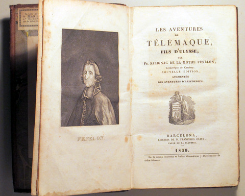 Barcelona, Librería de Francisco Oliva, 1839. Nouvelle édition augmentée des aventures d'Aristonou. Grabados fuera texto. 376 p 8º. Pasta española levemente rozado. Lomo estampado con dorados. Guardas coloreadas. ex libris. Livre en français. Buen ejemplar.