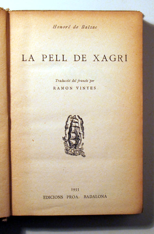 LA PELL DE XAGRÍ - Badalona 1933 - 1a edició en català