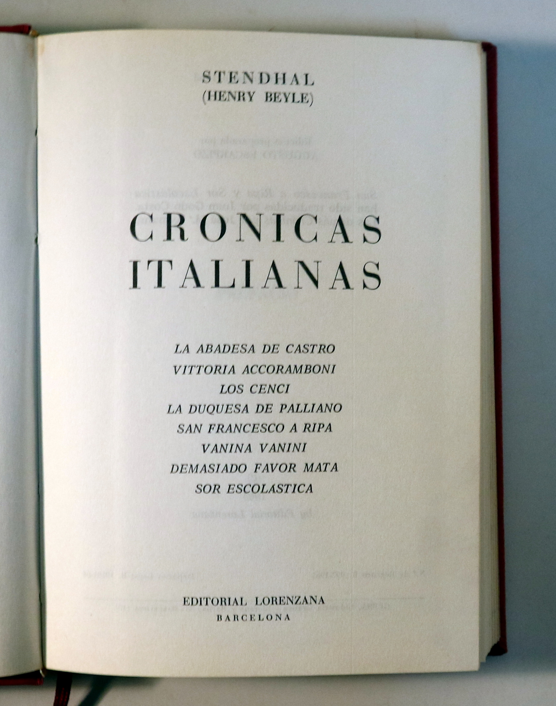 Barcelona, Edit. Lorenzana, 1965. 359p. 8º. Guaflex editorial estampado. Cinta de registro. Muy buen ejemplar. Traducidas por Juan Godo Costa y José Mª Aymamí. Crónicas italianas: La Abadesa de Castro. Vittoria Accoramboni. Los Cenci. La Duquesa de PaPalliano. San Francesco a Ripa. Vanina Vanini. Demasiado favor mata. Sor Escolástica.