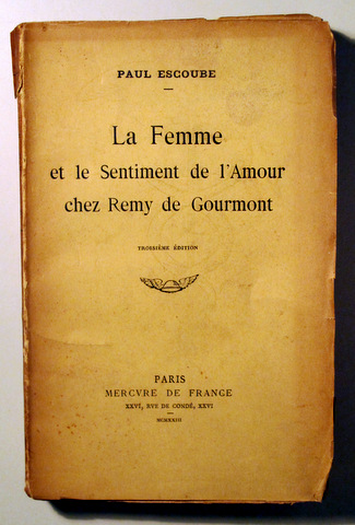 ¡Precio rebajado! LA FEMME ET LE SENTIMENT DE L'AMOUR CHEZ REMY DE GOURMONT - Paris 1923 - Livre en français