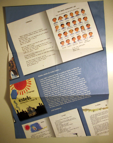 Barcelona, Velódromo, 2011.Estels, estels de molts colors. Dirigido por Julià Guillamon y Albert Planas. 2 hojas plegadas. Gran folio. Ilustraciones del libro juvenil Estels de la editorial Teide de 1967 en la cuiberta anterior y posterior y carta del bar-restaurante en el interior. Muy buen ejemplar.