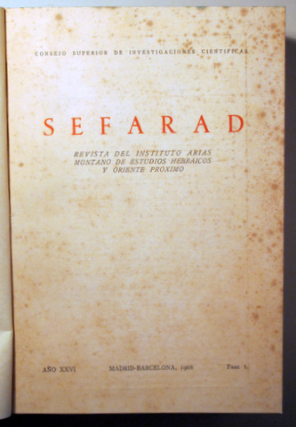 SEFARAD. Revista Estudios Hebraicos, Sefardíes y de Orienrte próximo. Año XXVI, Fasc. 1 - Madrid 1966 - Ilustrado