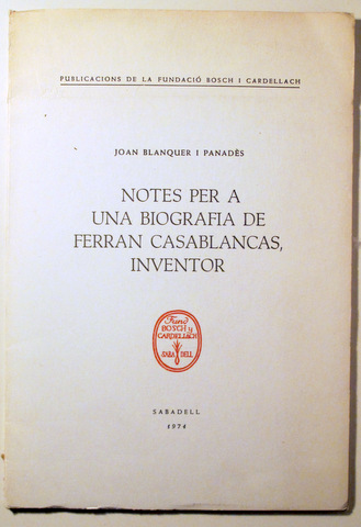NOTES PER A UNA BIOGRAFIA DE FERRAN CASABLANCAS, INVENTOR - Sabadell, 1974