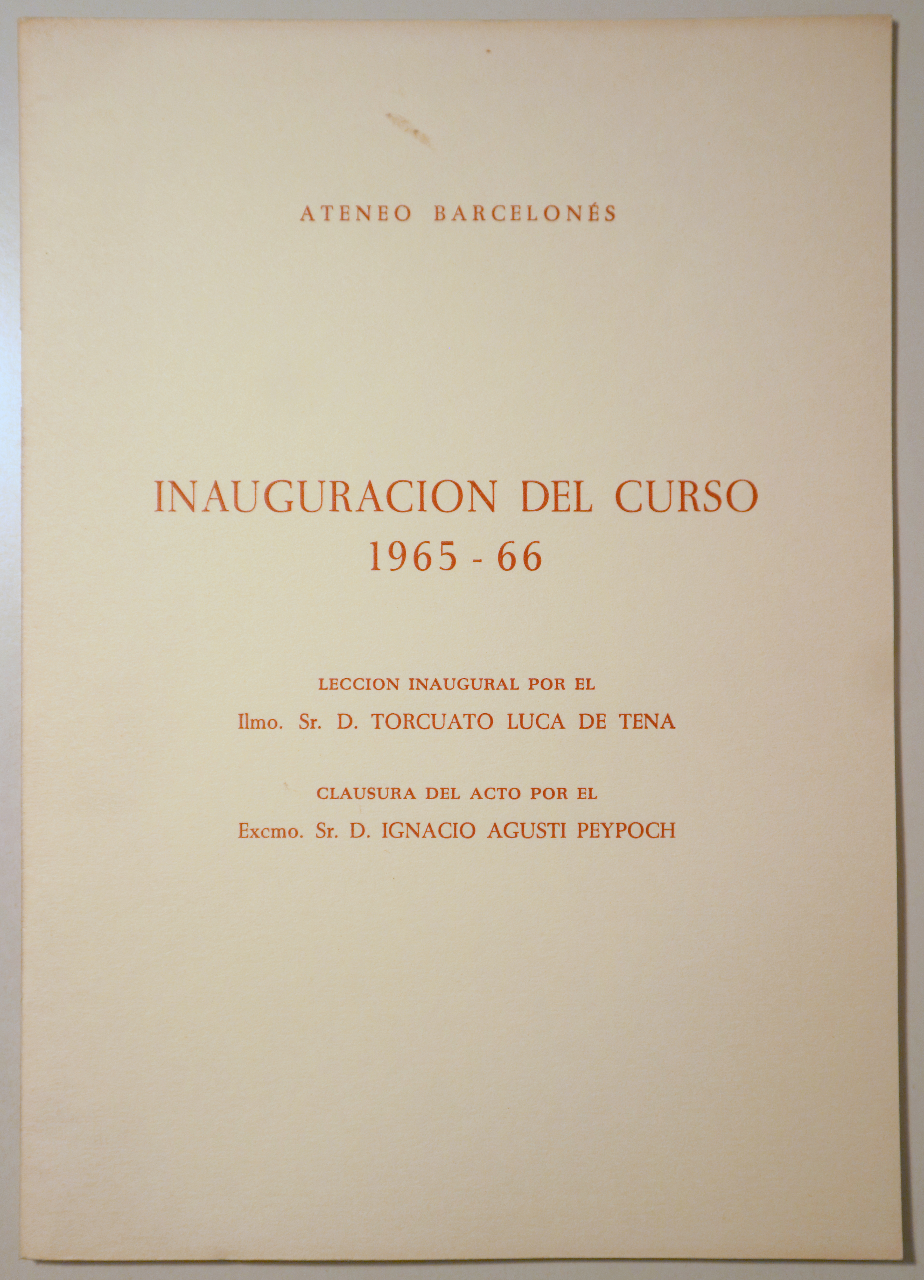 >HISTORIA LOCAL>ATENEO BARCELONÉS. INAUGURACIÓN DEL CURSO 1965-66 - Barcelona 1966