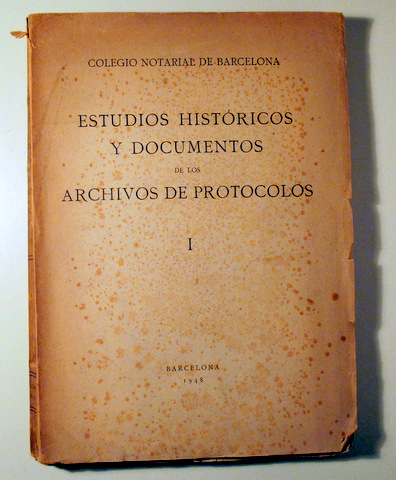 ESTUDIOS HISTÓRICOS Y DOCUMENTOS de los ARCHIVOS de PROTOCOLOS I - Barcelona 1948