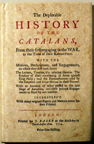 Barcelona, Enciclopèdia Catalana, 1991. THE DEPLORABLE HISTORY OF THE CATALANS from their first engaging in the war to the Time of their Reduction. Reproducció facsímil d'aquesta text de 1714 en homenatge als 25 anys d'Enciclopèdia Catalana. 8è. Tela editorial amb sobrecoberta. Molt bon exemplar, perfecte.