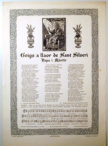 GOIGS A LLAOR DE SANT SILVERI PAPA I MÀRTIR - Barcelona 1958