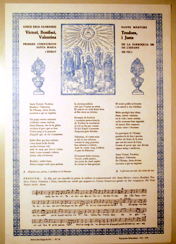 GOIGS DELS GLORIOSOS SANTS MÀRTIRS VICTORÍ, BONIFACI, TEODORA, VALENTINA I JUSTA - Vic 1975