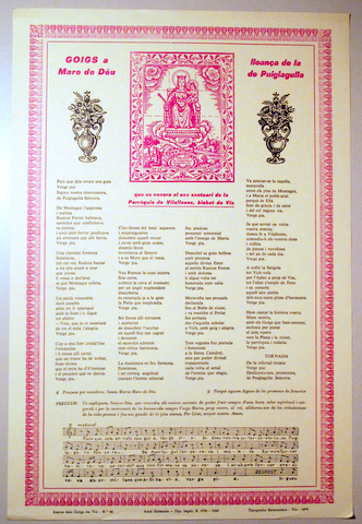 GOIGS A LLOANÇA DE LA MARE DE DÉU DE PUIGLAGULLA - Vic 1975
