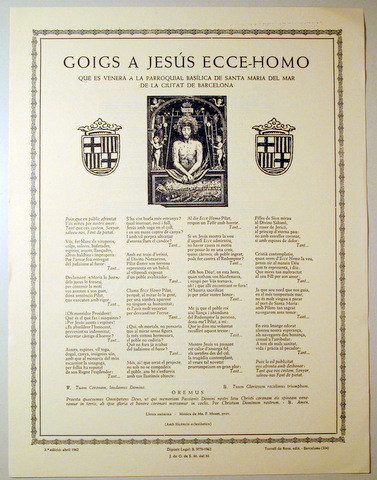 GOIGS A JESÚS ECCE-HOMO QUE ES VENERA A SANTA MARIA DEL MAR DE BARCELONA - Barcelona 1962