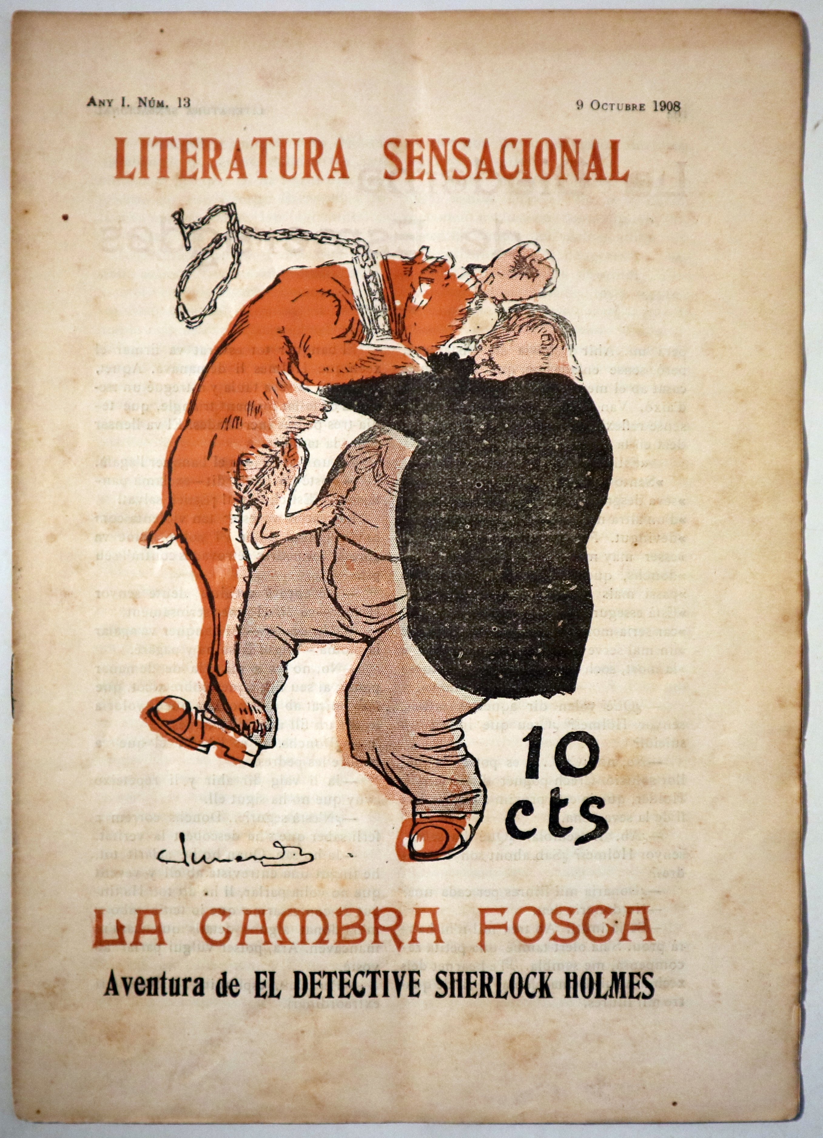 Barcelona, Literatura Sensacional, 1908. "Aventura de El detective Sherlock Holmes". Coberta de Junceda. s/p. 4t menor. Rústica editorial il·lustrada. Un pèl gastada. Bon exemplar.