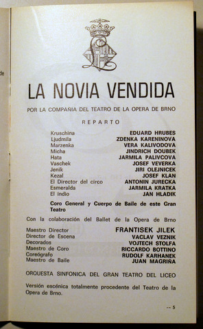 GRAN TEATRO DEL LICEO. Temporada de ópera 1973 - 1974. La novia vendida