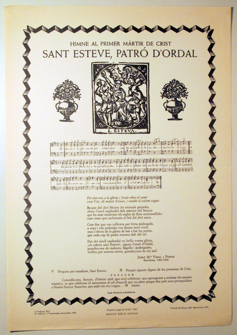 >ARTE>MÚSICA>HIMNE AL PRIMER MÀRTIR DE CRIST SANT ESTEVE, PATRÓ D'ORDAL - Barcelona 1965