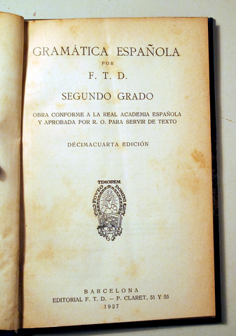 GRAMÁTICA ESPAÑOLA - Barcelona 1927