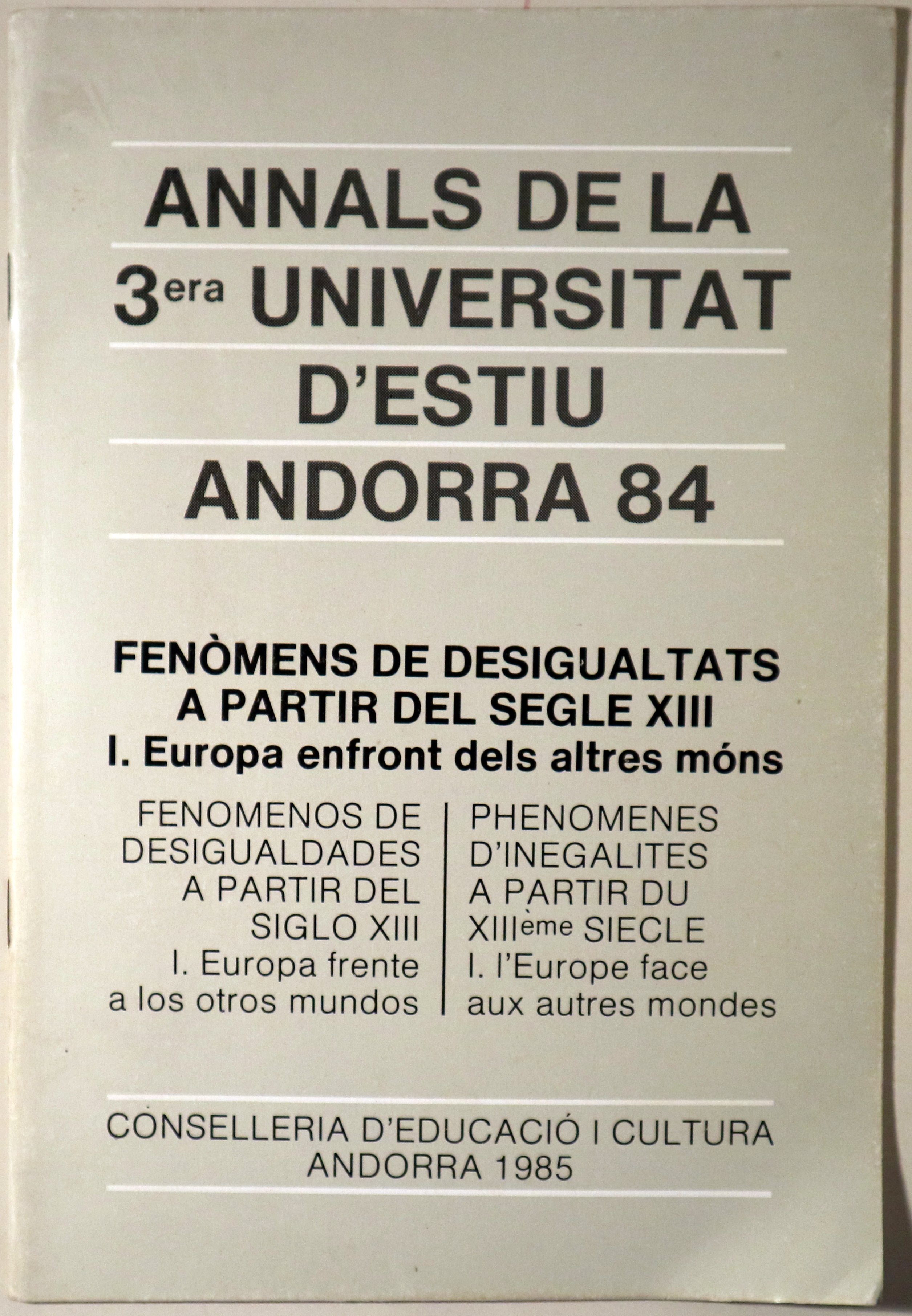 ANNALS DE LA 3a UNIVERSITAT D'ESTIU ANDORRA 84. Fenòmens de desigualtats a partir del segle XIII I. Europa enfront dels altres