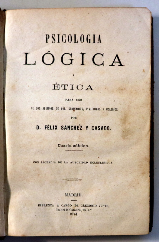 PSICOLOGÍA LÓGICA Y ÉTICA / HISTORIA NATURAL - Madrid 1873-1874