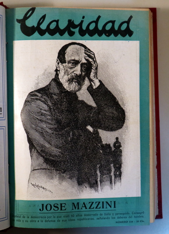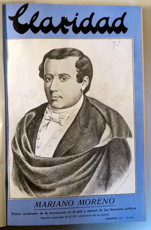 Buenos Aires, Editorial Claridad, 1929-1930. Revista de arte, crítica, y letras, Tribuna del Pensamiento Izquierdista. Director: Antonio Zamora.,14 números encuadernados en guaflex conservando las cubiertas originales. Número de adhesión a la República española con fotografía de Alcalá Zamora y Francesc Macià en la portada, número anunciando la muerte de Santiago Rusiñol con fotografía del autor en la portada, número con fotografía de Roberto Arlt en la cubierta, entre otros. 4º mayor. Muy buenos ejemplares. La revista Claridad se editó en Buenos Aires de 1926 a 1941. Como indica la segunda parte del subtítulo que tenía: «Revista de arte, crítica y letras, tribuna del pensamiento izquierdista», el carácter político de la revista era bastante marcado. En 1935 al subtítulo se le agregó: «Queremos hacer la revolución en los espíritus educando al soberano», y en 1937 se reemplazó por: «Revista de arte, crítica y letras, ciencias sociales y políticas. La revista americana de los hombres libre».[