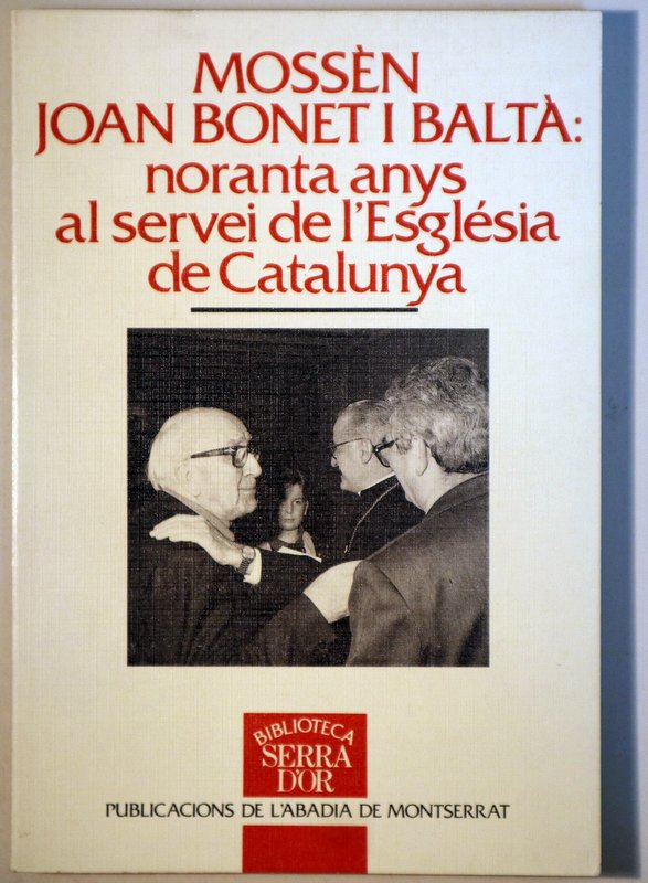 >RELIGIÓN>MOSSÈN JOAN BONET I BALTÀ: noranta anys al servei de l'Església de Catalunya - Barcelona 1996 - Il·lustrat
