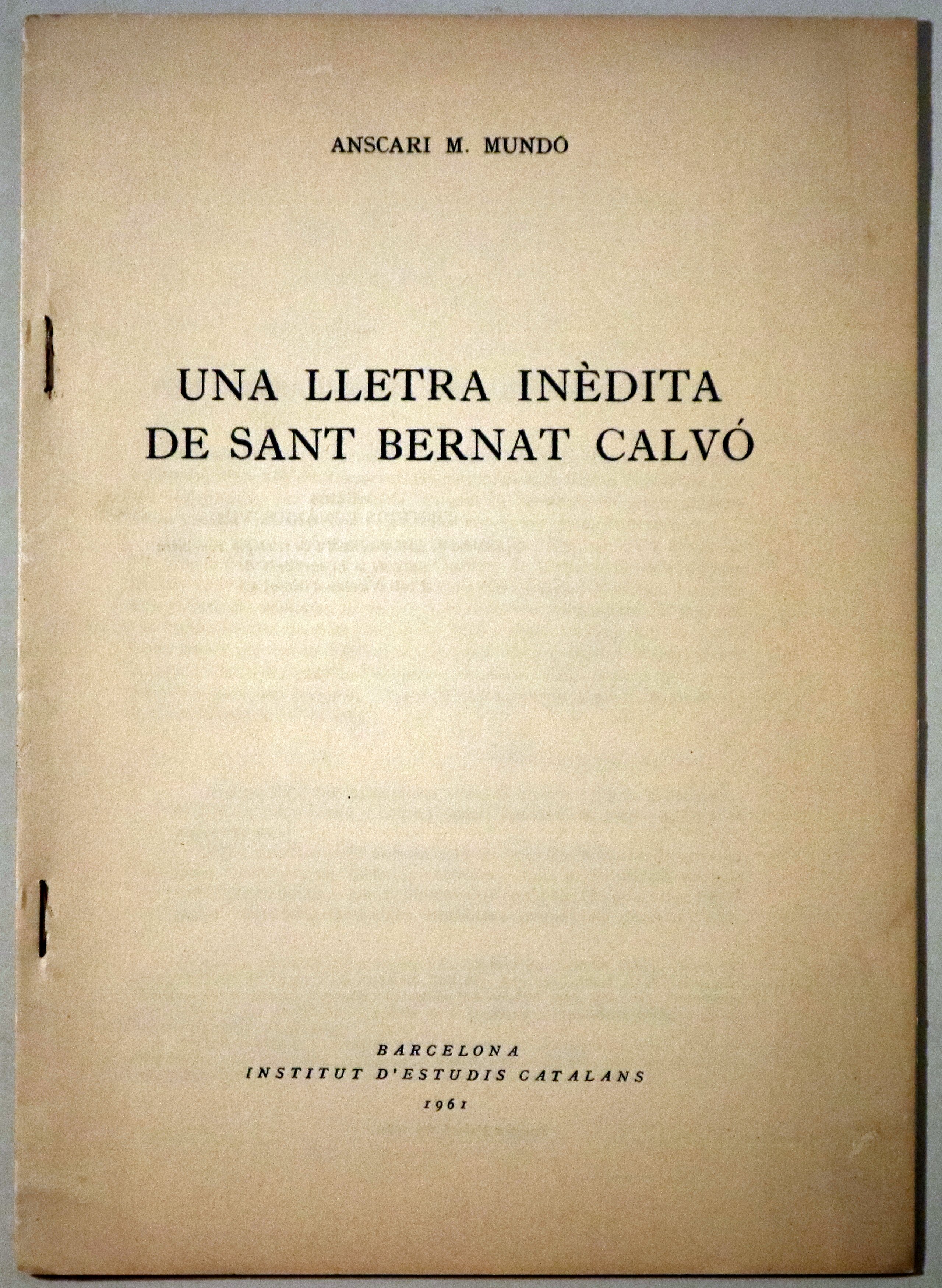 UNA LLETRA INÈDITA DE SANT BERNAT CALVÓ - Barcelona 1961