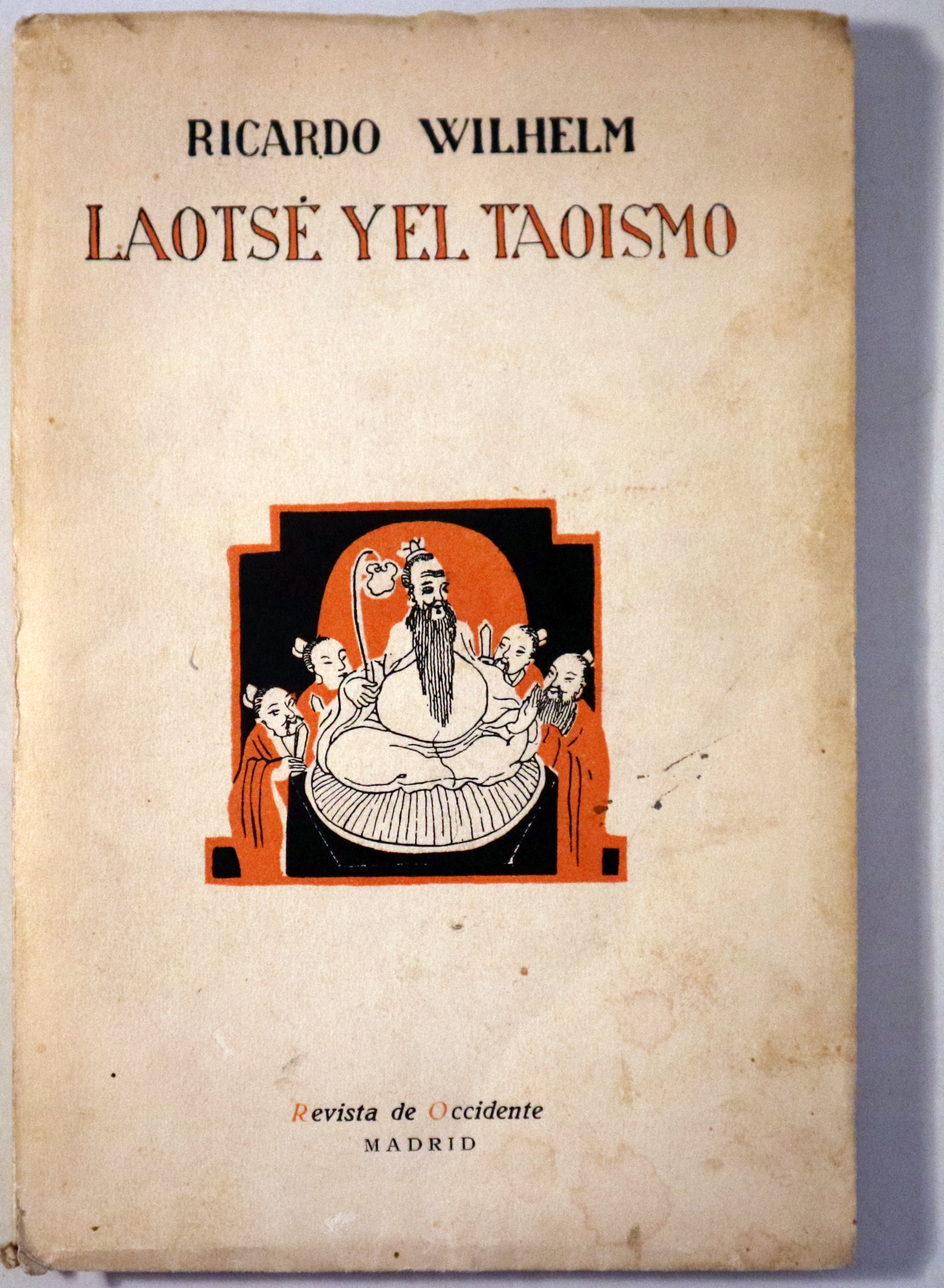 Madrid, Revista de Occidente, 1926. Laotsé y su obra, las doctrinas de Laotsé, la influencia de Laotsé. Traducción de A. García-Molins.130 p. 4º menor. Rústica editorial ilustrada. Inscripción del antiguo propietario. Algunas manchas de óxido. Levemente rozada. Buen ejemplar. 1ª edición. 1st edition.