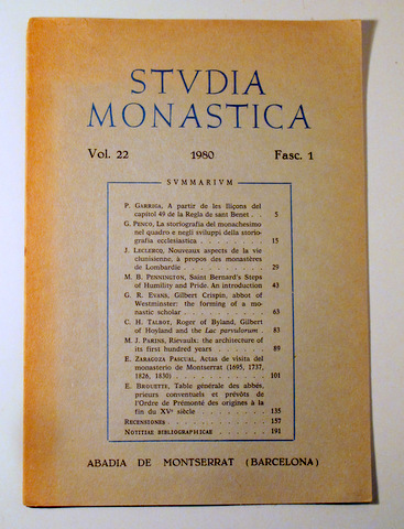 STUDIA MONASTICA vol. 22. Fasc. 1: A PARTIR DE LES LLIÇONS DEL CAPÍTOL 49 DE LA REGLA DE SANT BENET - Barcelona 1980