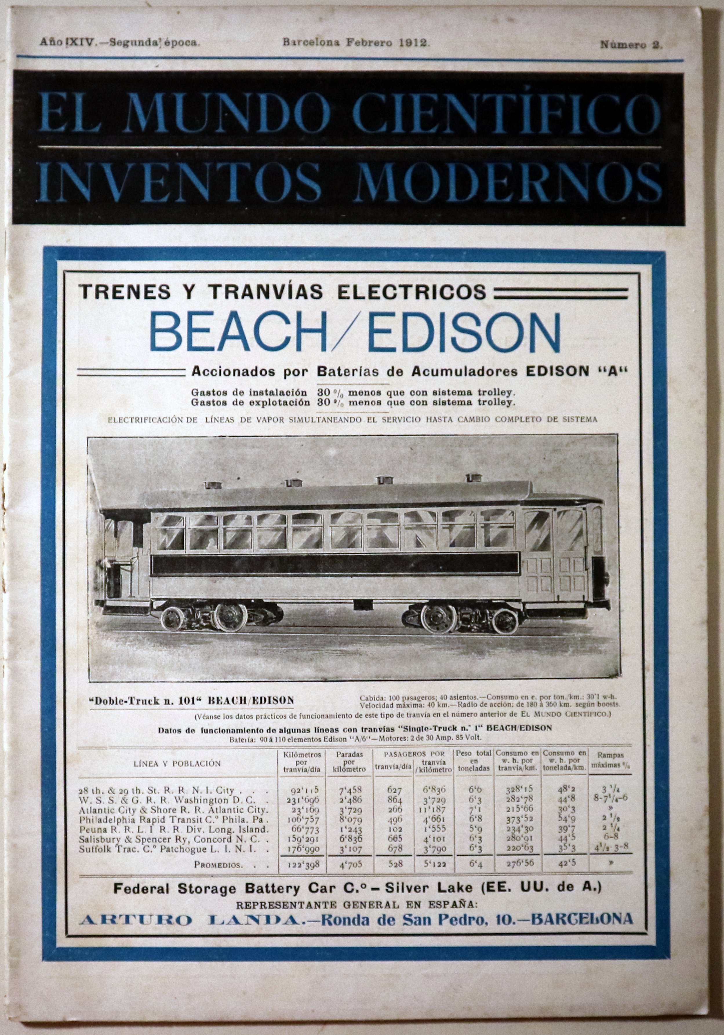 Barcelona, El Mundo Científico. Inventos modernos, Febrero 1912. Ilustraciones y gráficos en b/n. 25 p. 4º. Rústica editorial ilustrada. Algunas manchas de óxido. Un poco desgastado. Buen ejemplar.