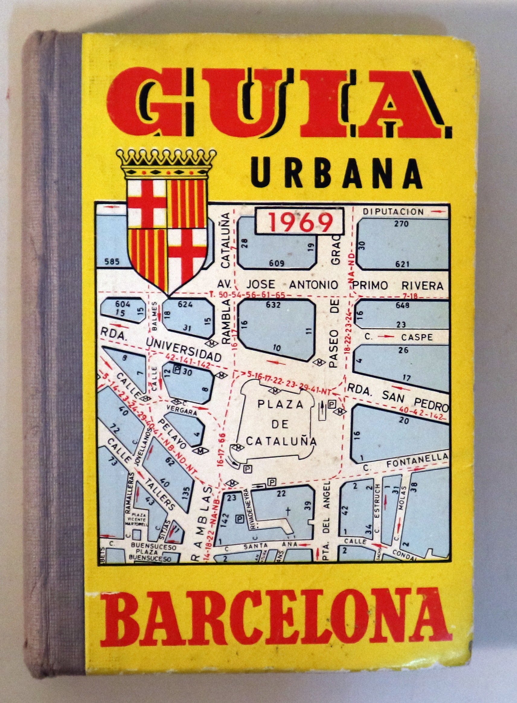 Barcelona, Pamias, 1969. Guia urbana de Barcelona obra especialmente util a los funcionarios publicos profesionales turistas conductores de vehiculos comercio en general 313p. 192 planos. Página desplegable. 8º. Holandesa editorial ilustrada. bordes levemente rozados. Buen ejemplar.